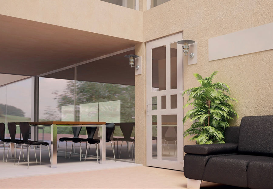 Нам все еще кажется, что они годятся лишь для кафе, магазинов и прочих общественных заведений, но это совсем не так. Входная полупрозрачная дверь отлично подходит для собственного дома, а межкомнатные двери такого типа способны серьезно расширить замкнутое пространство квартиры.